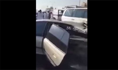 تداول نشطاء على مواقع التواصل الاجتماعي، مقطع فيديو لحادث بشع في المملكة العربية السعودية وتحديدا في مدينة الرياض ، حيث تسببت السرعة الجنونية في انشطار سيارة واحتجاز سائق سيارة أخرى.